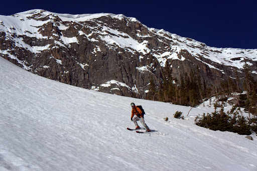 Remember Jason's post about skiing a likely first descent of Caterpillar Couloir on Mt. Alice? After Jason crushed me on a 24 mile day of carrying skis and skinning deep into the heart of Rocky Mountain National Park, I was psyched to head back up East Inlet and explore its granite faces.